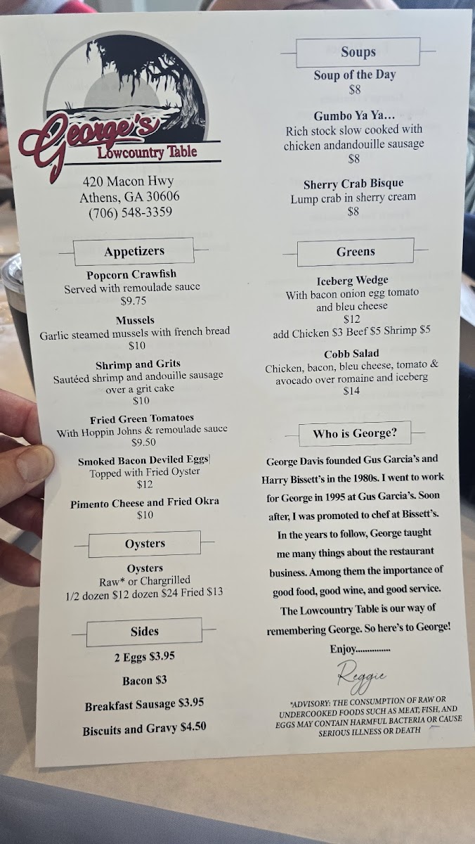Welcome to George's Lowcountry Table, a culinary gem nestled in Athens, GA. This charming spot celebrates authentic Southern flavors, offering a delightful menu that transports you straight to the heart of Lowcountry cuisine.