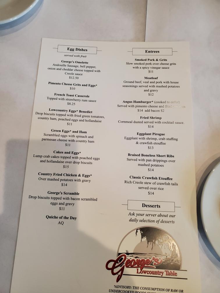 Whether you're enjoying a leisurely brunch with Sunday mimosas or a cozy dinner with friends, the warm service and inviting atmosphere make every visit special. At George's Lowcountry Table, each meal is a celebration of Southern heritage, inviting you to savor every bite.